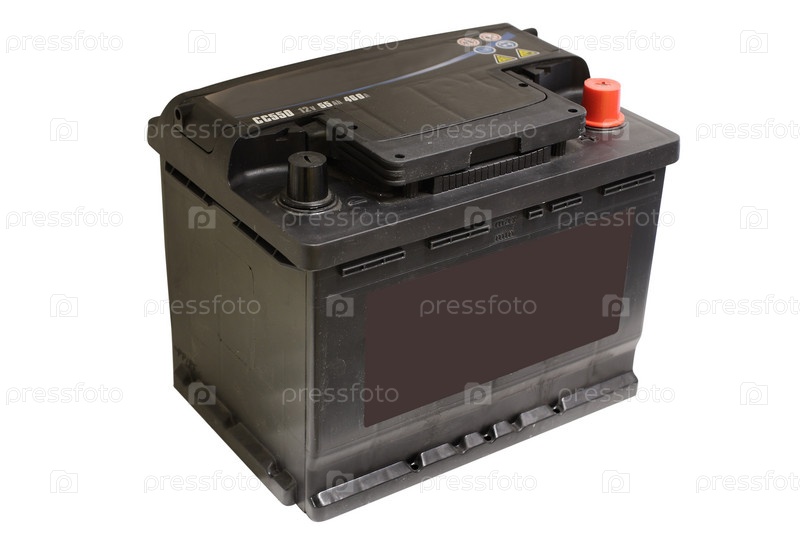 Образ автомобильного аккумулятора изолированного на белом фоне