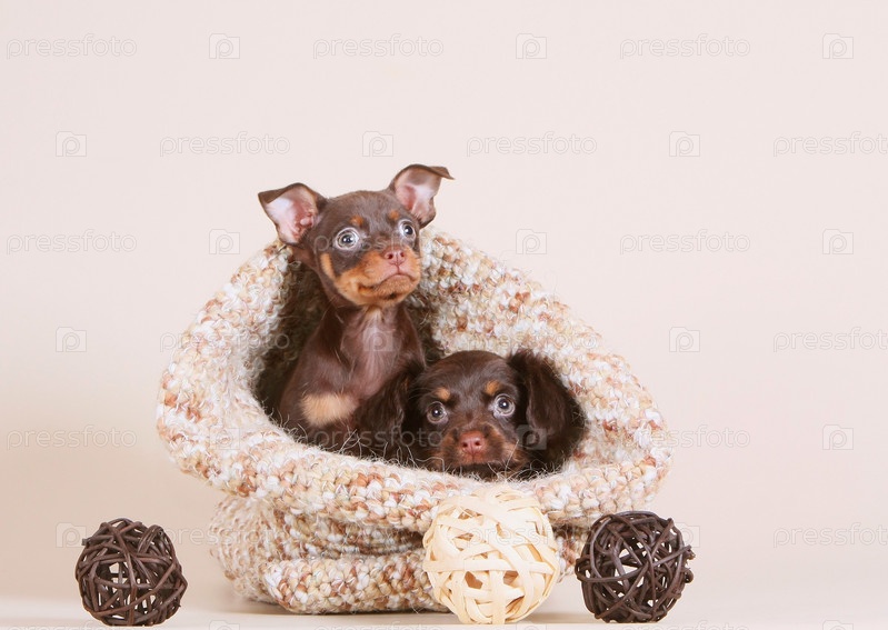 Щенки той-терьера на бежевом фоне