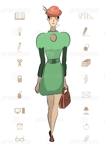 Женщина и иконки на белом фоне