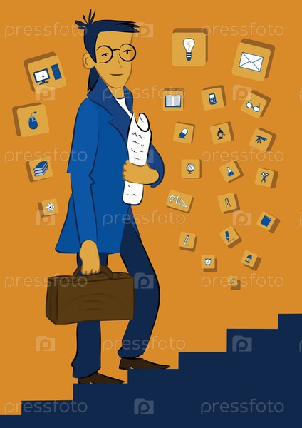 Мужчина идет вверх по лестнице