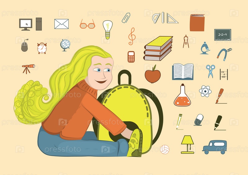 Иконки на тему школы и школьница