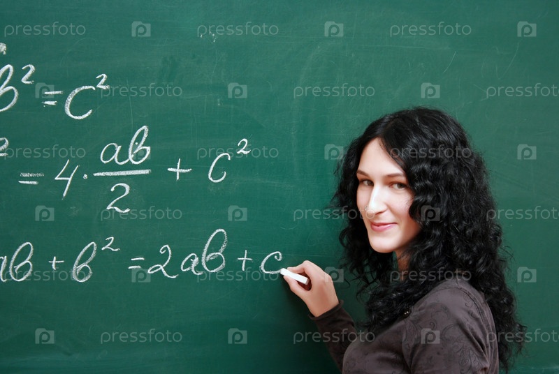 Девушка пишет формулы на классной доске