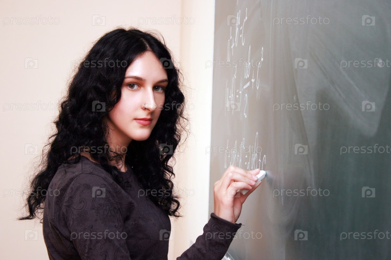 Девушка пишет формулы на классной доске