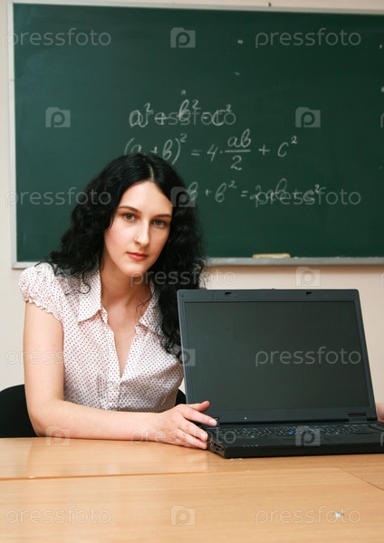 Девушка на уроке с ноутбуком