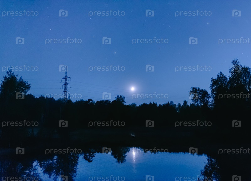 Линия электропередачи в лунном свете