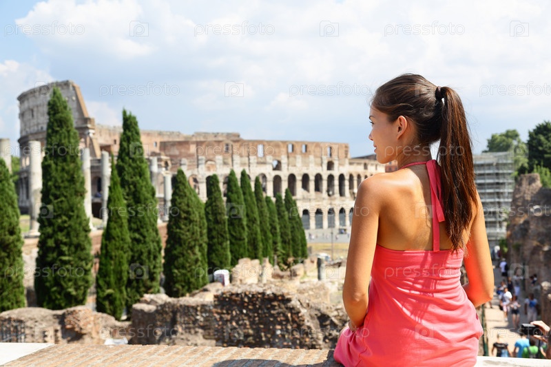 Туристка смотрит на Колизей, Рим