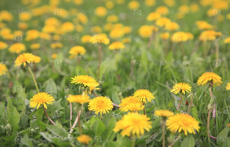 Поляна желтых одуванчиков