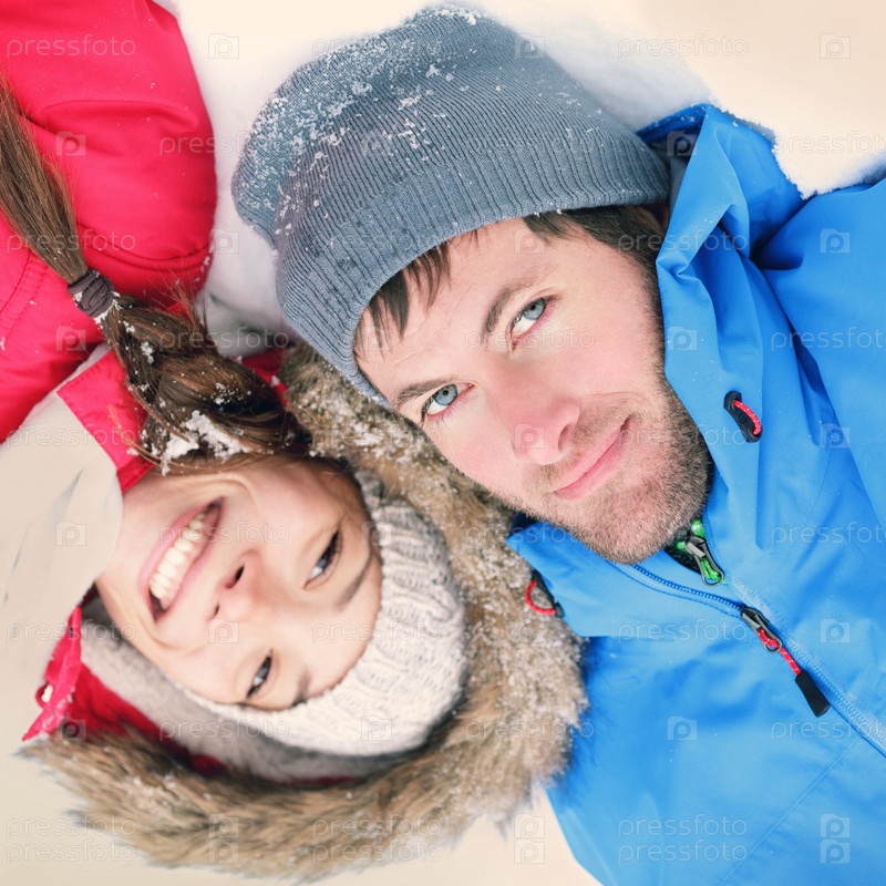 Счастливая пара на природе зимой