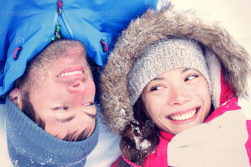 Счастливая пара на природе зимой