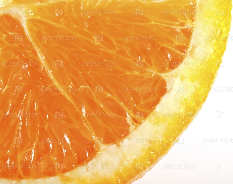 Долька апельсина крупным планом на белом фоне