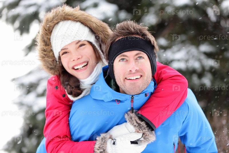 Счастливая пара на природе зимой