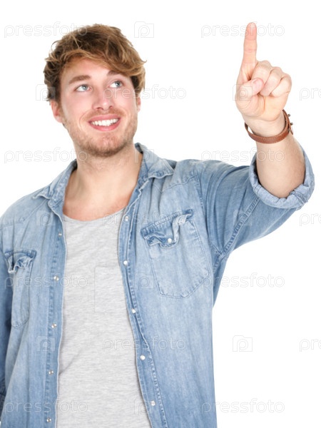 Молодой человек нажимает на кнопку