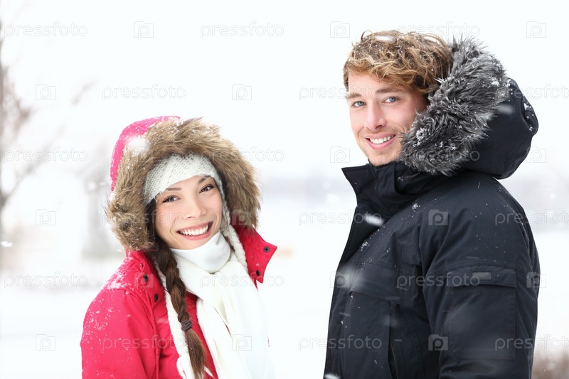 Счастливая пара на природе зимой