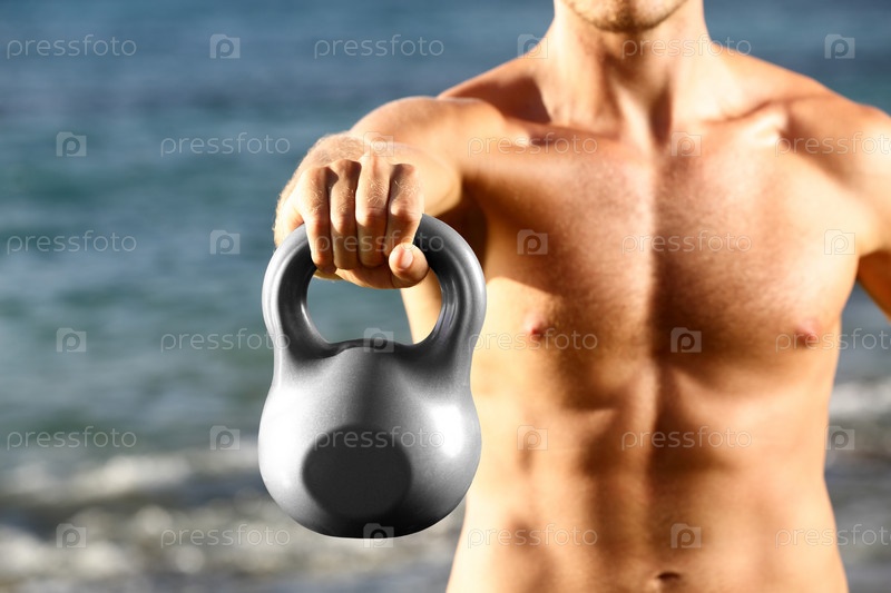 Мужчина поднимает гирю