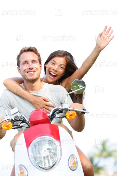 Счастливая пара на скутере