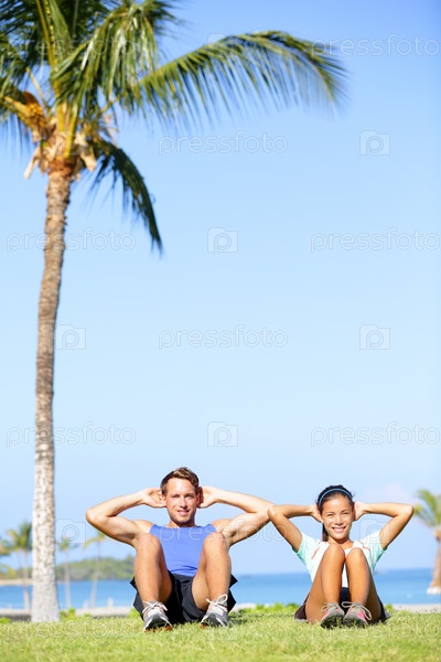 Люди делают упражнения