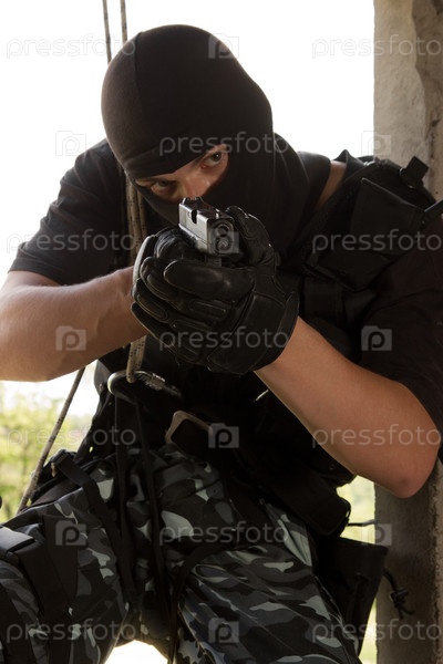 Человек в маске с пистолетом