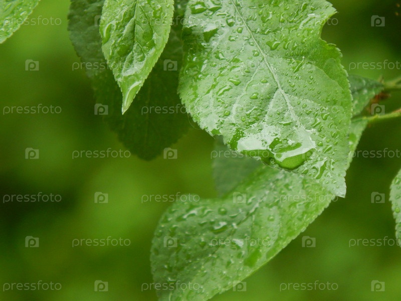 Капля воды на зеленом листе