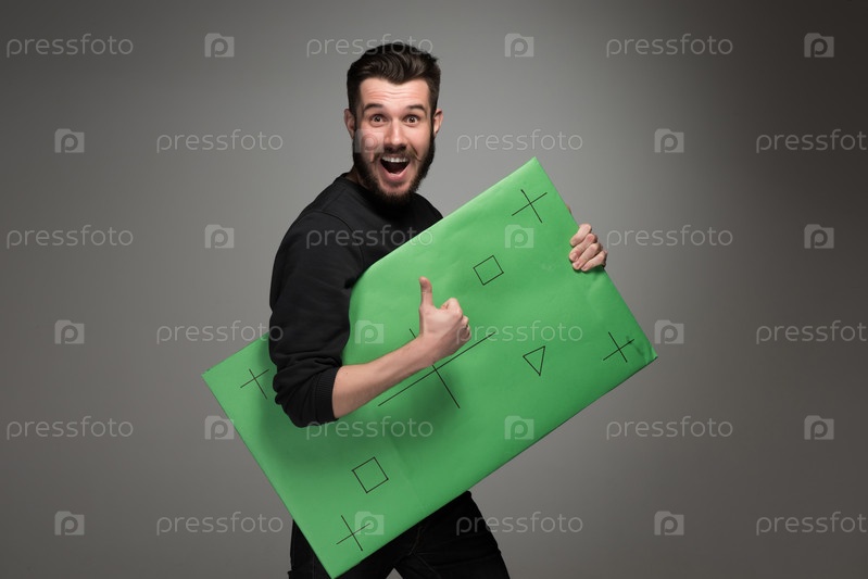 Человек с зеленой панелью