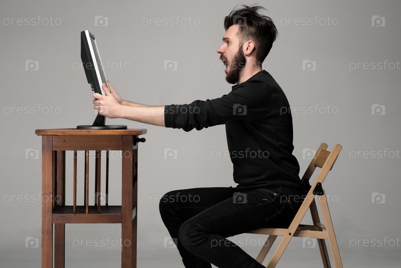 Смешной человек за компьютером