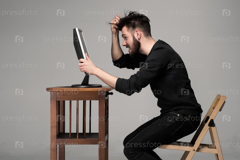 Смешной человек за компьютером