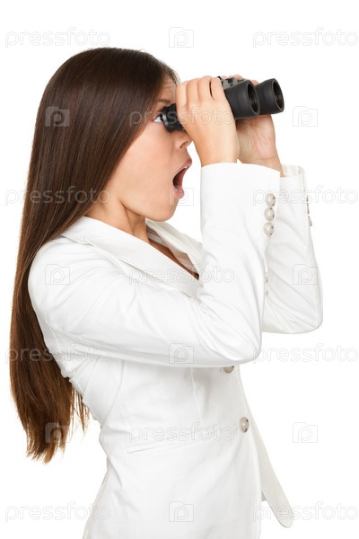 Удивлен бизнесвумен, глядя через бинокль