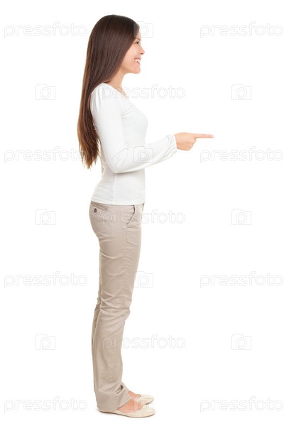 Молодая женщина указывает на фон