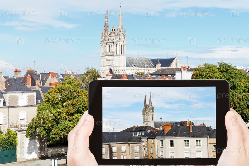 Человек фотографирует собор в городе Анже