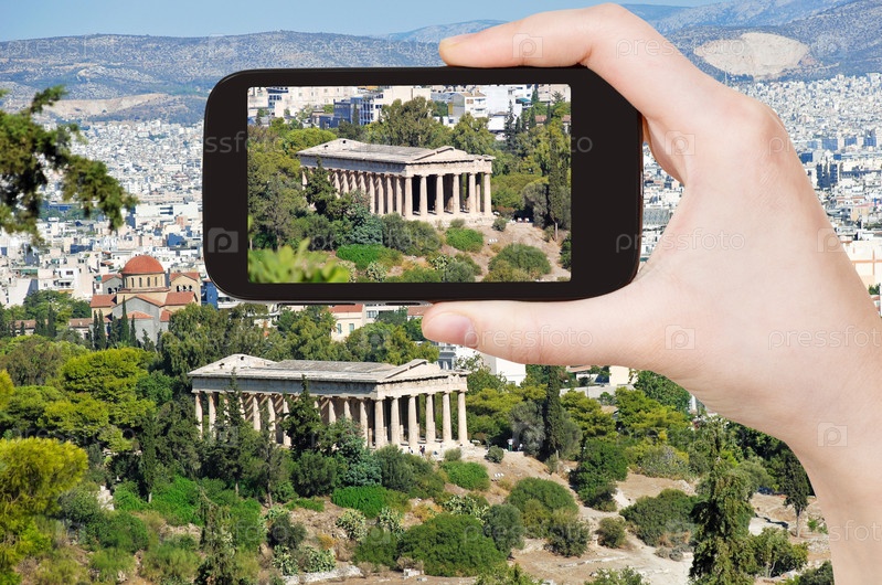 Турист фотографирует храм в Афинах