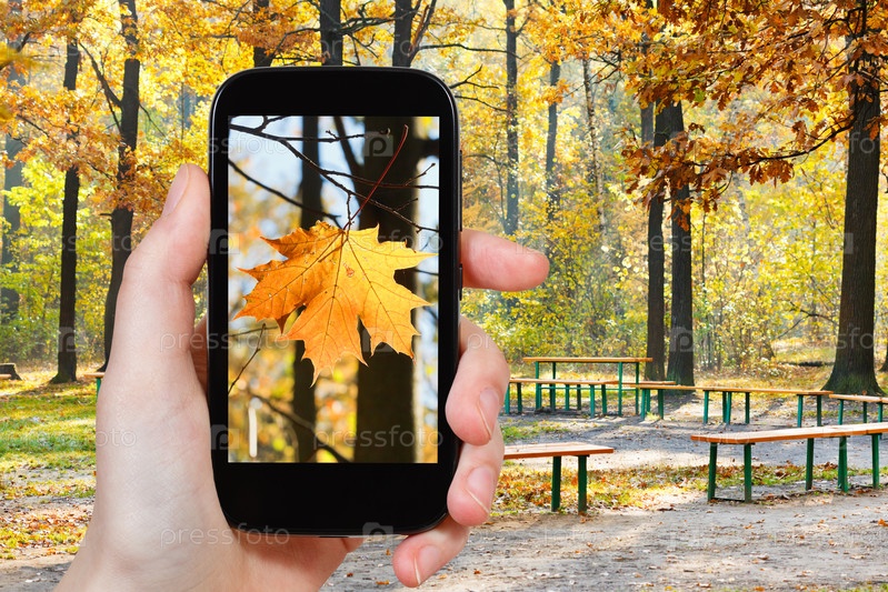 Человек фотографирует осенний парк