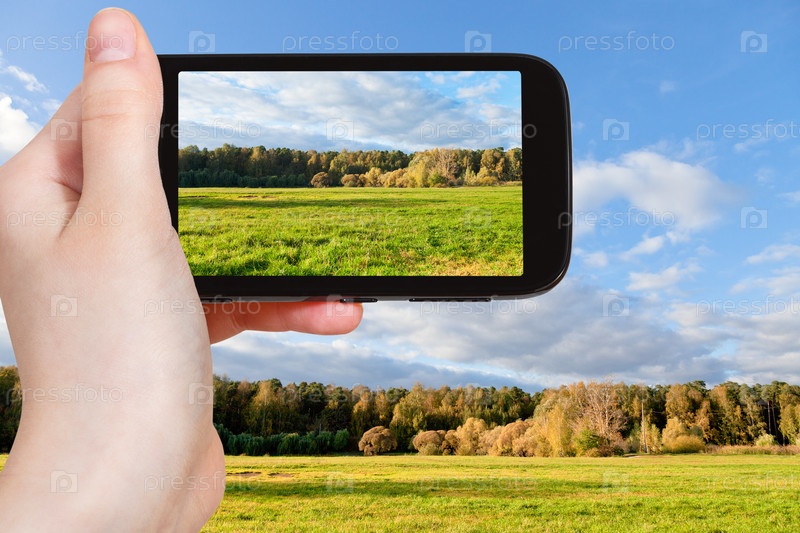 Человек фотографирует зеленый луг