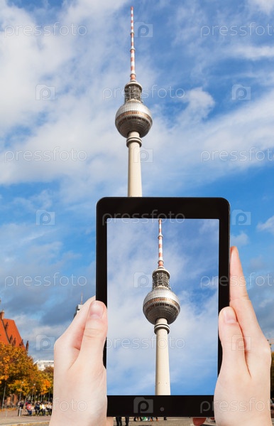 Турист фотографирует телевизионную башню на Александерплац