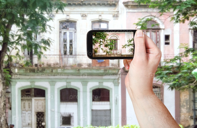 Человек фотографирует старое здание в Гаване