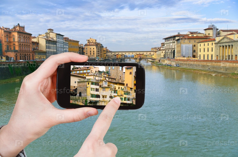 Человек фотографирует мост Понте Веккьо во Флоренции