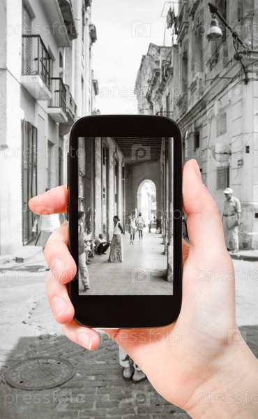 Человек фотографирует город Гавана