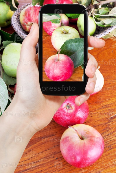 Человек фотографирует яблоки