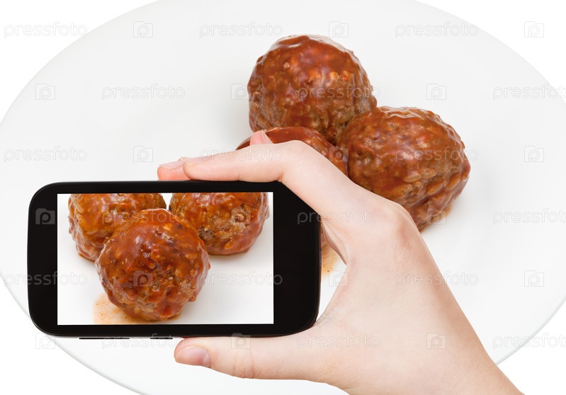 Человек фотографирует фрикадельки