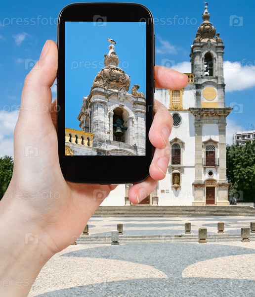 Турист фотографирует церковь Кармо в городе Фаро