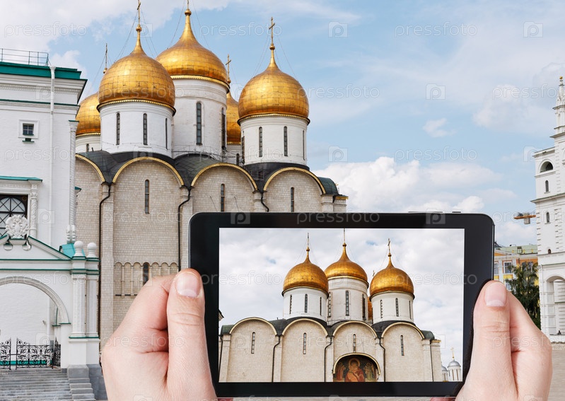 Человек фотографирует Успенский собор