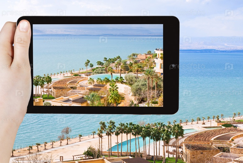 Человек фотографирует Мертвое море в Иордании