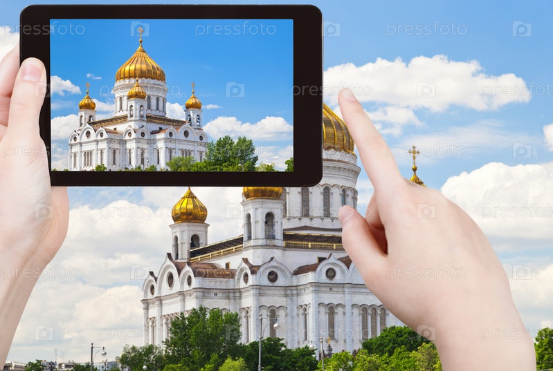 Человек фотографирует собор Христа Спасителя, Москва