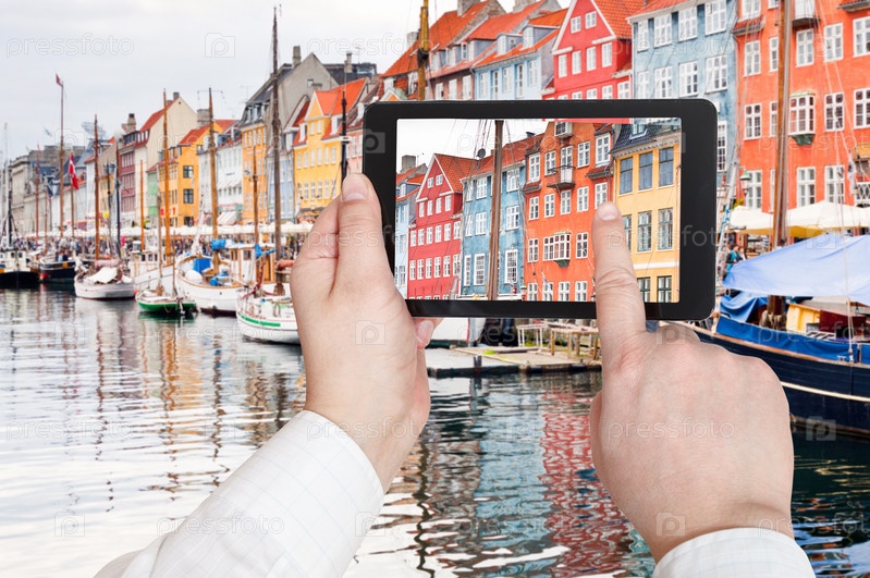 Человек фотографирует гавань Нюхавн