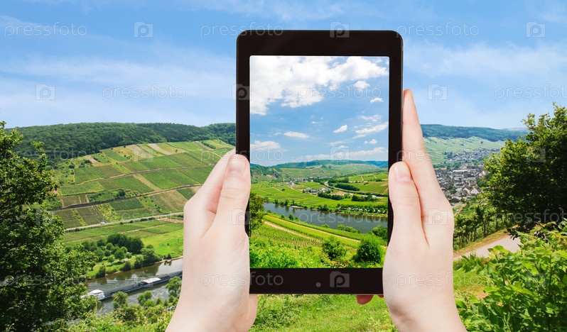 Человек фотографирует долину Мозель, Германия