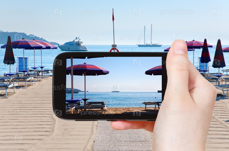 Человек фотографирует пляж Джардини Наксос