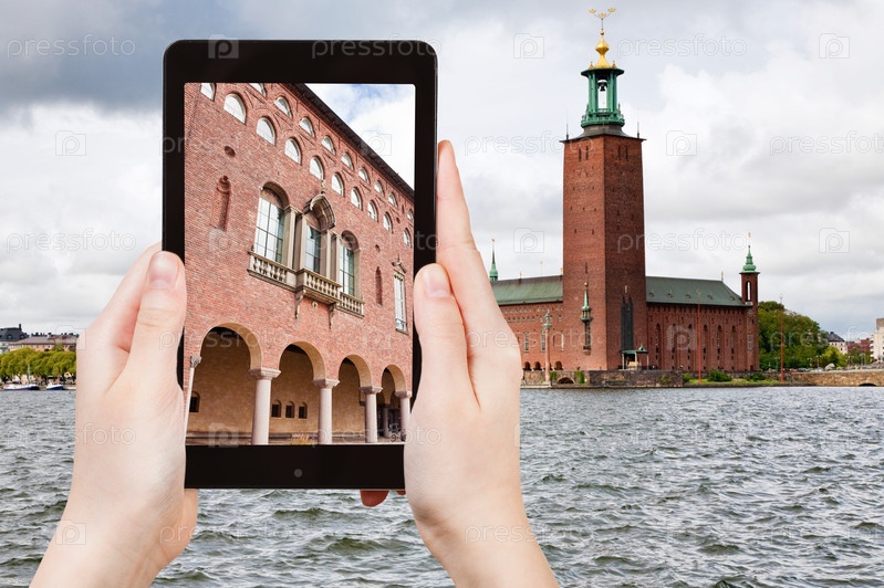 Человек фотографирует мэрию Стокгольма