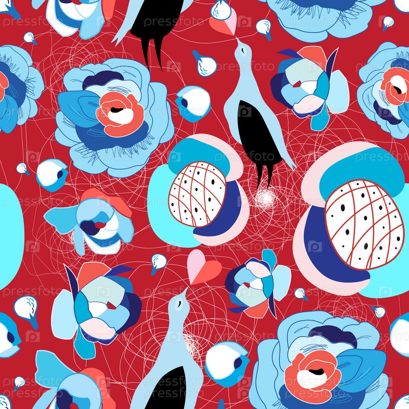 Цветочный узор с птицами