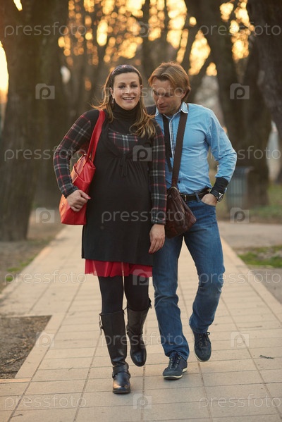 Мужчина и беременная женщина на улице