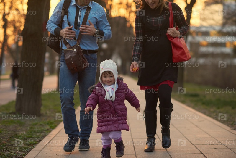Семья гуляет на улице