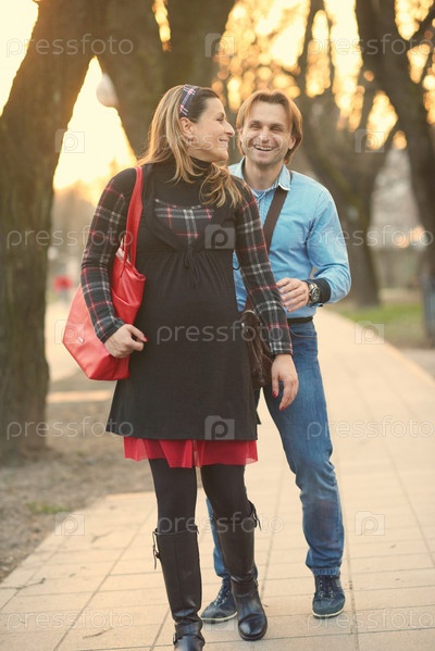 Мужчина и беременная женщина на улице