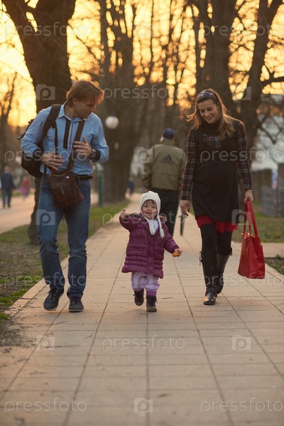 Семья гуляет на улице